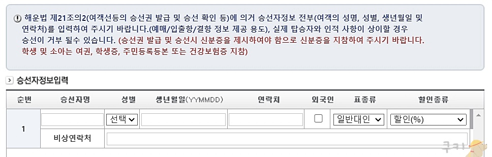 만약의 사태를 대비해서 본인 전화번호와 비상연락망을 받아둔다고 합니다. 탑승시에는 본인의 신분을 증명할 수 있는 신분증이 있어야 하며, 아이들이나 학생들은 건강보험증, 주민등록등본, 여권, 학생증 등을 제출할 수 있습니다.